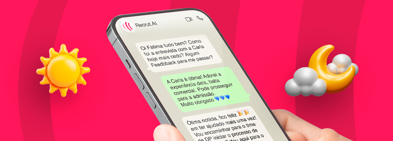 Mesmo sendo digital, o recrutamento é personalizado: o Recrutador Digital entende seu ritmo, respeita seu tempo e fala a sua linguagem.